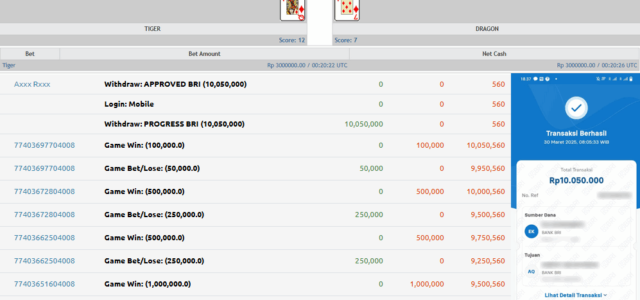 JACKPOT LIVE CASINO MAIN DRAGON TIGER | 31 MARET 2025, Kemenangan Live Casino, Bukti Kemenangan Live Casino, Kemenangan Live Casino Diamond Roulette, Menang Live Casino Online, Live Casino, Situs Aman Terpercaya, WD Berapapun Pasti DI Bayar Tuntas, Kemenangan Live Casino.