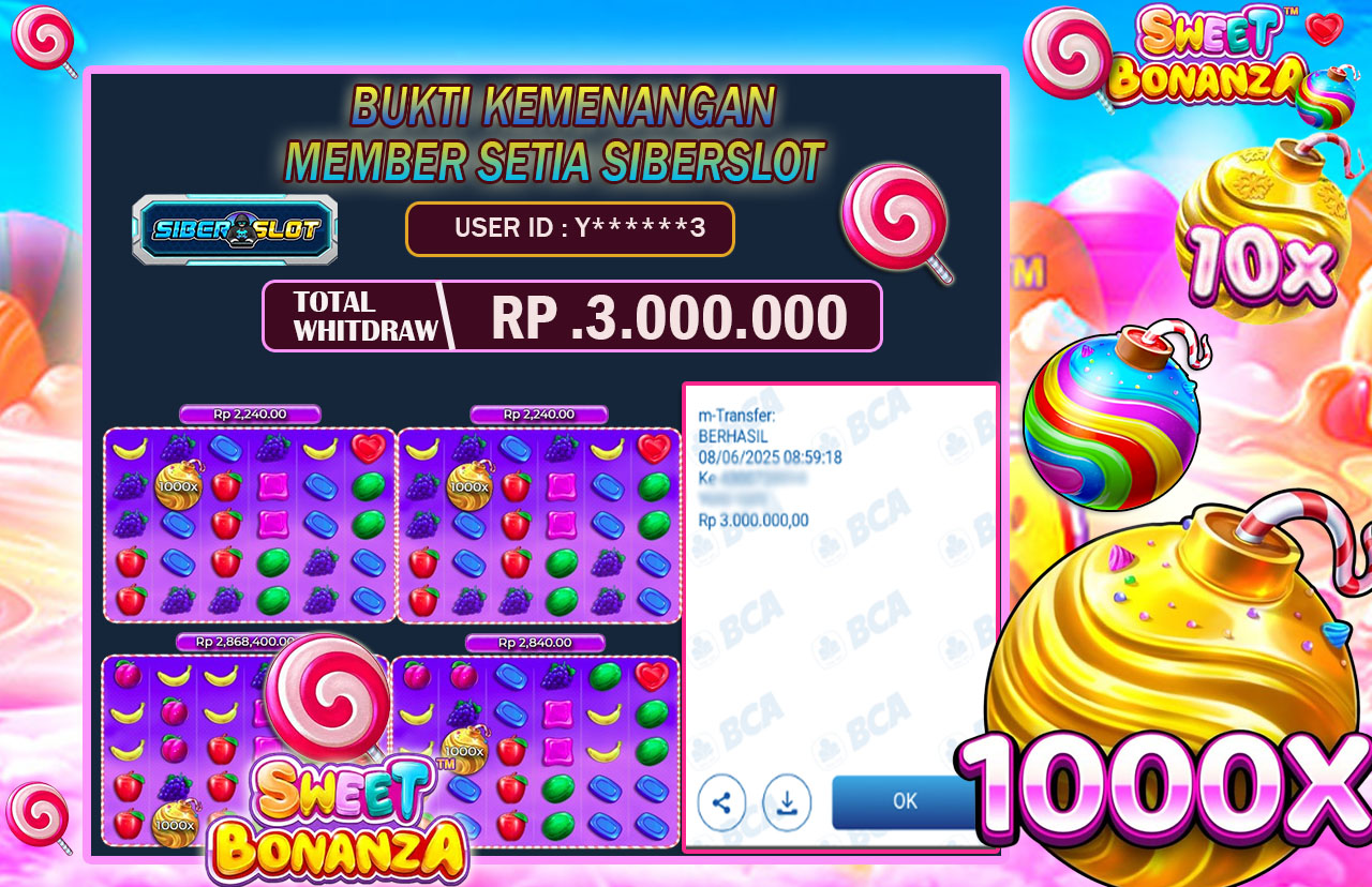 SIBERSLOT Slot Gacor JACKPOT MAIN SLOT GACOR BONANZA 1000 08 JUNI 2025, Jackpot Slot Gacor, Kemenangan Slot, Bukti Kemenangan, Kemenangan Pragmatig Play, Menang Slot online, Slot Gacor, Situs Aman Terpercaya, WD Berapapun Pasti DI Bayar Tuntas, Maxwin Slot Online.