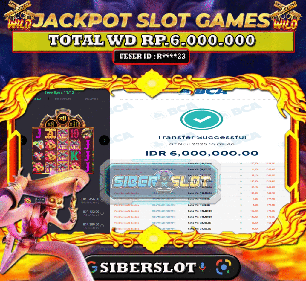 SIBERSLOT JACKPOT MAIN WILD BANDITO 07 NOVEMBER 2025 Jackpot Slot Gacor, Kemenangan Slot, Bukti Kemenangan, Kemenangan Pragmatig Play, Menang Slot online, Slot Gacor, Situs Aman Terpercaya, WD Berapapun Pasti DI Bayar Tuntas, Maxwin Slot Online.